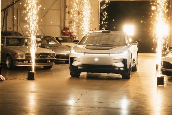 法拉第未來於 2017 年首次發表 FF91 SUV,當時號稱是超豪華電動車,但該公司屢屢遭遇財務危機,直到 2023 年才開始量產並交付十多台車,後來更經歷執行長被董事會勒令離職、股價爆跌近 98% 的各種狀況,外媒稱此為「法拉第未來鬧劇」。