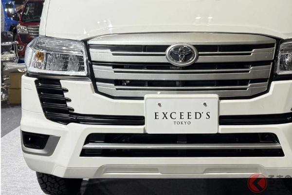 透過 RIDE+TECH 從零開始打造的改裝套件,為 Town Ace 導入 Land Cruiser 旗艦越野休旅設計元素,包括大型銀色橫柵水箱護罩與下方 U 行格柵,頭燈則以 Town Ace 基礎進行微調,不會破壞 Land Cruiser 套件的霸氣氛圍,同時加入更粗獷的越野胎,形成獨特視覺衝擊。