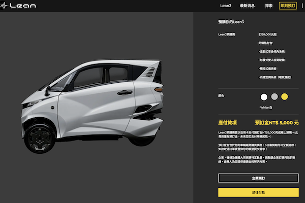 Lean Mobility 推出的 Lean3 電動三輪車,今天早上 10 點半在官方網站開放個人預訂。